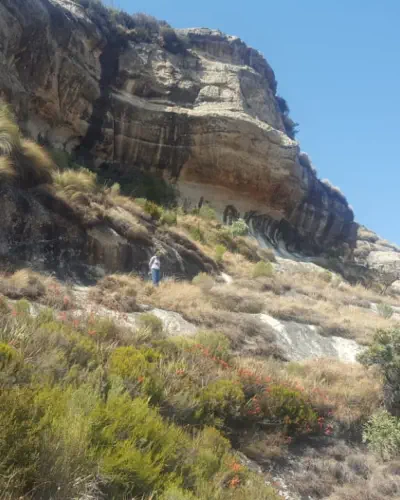 dainty waterfall from the springs above, a few intact Khoisan paintings, and at