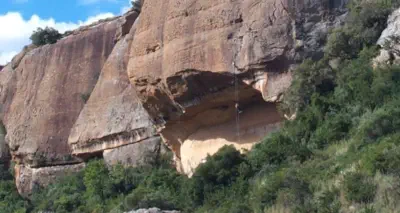 option: at the top of the cliff turn right, follow the white marks on the sandstone