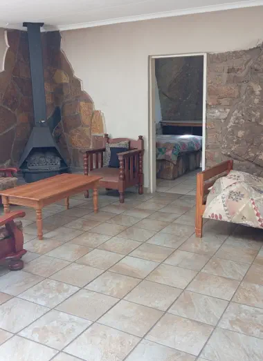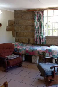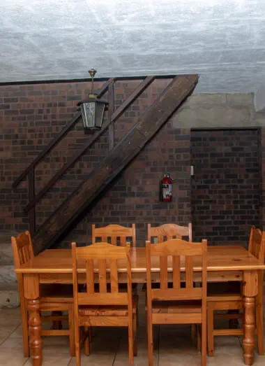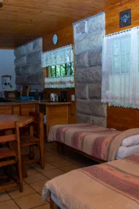 dining room / kitchen area, outside stoop, 1 bedroom with a double bed,